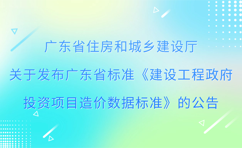 广东省住房和城乡建设厅关于发布广东省标准《建设工程政府投资项目造价数据标准》的公告