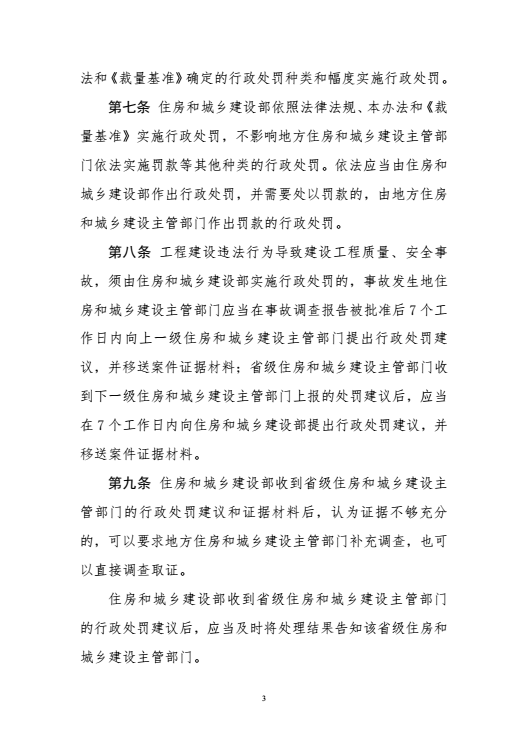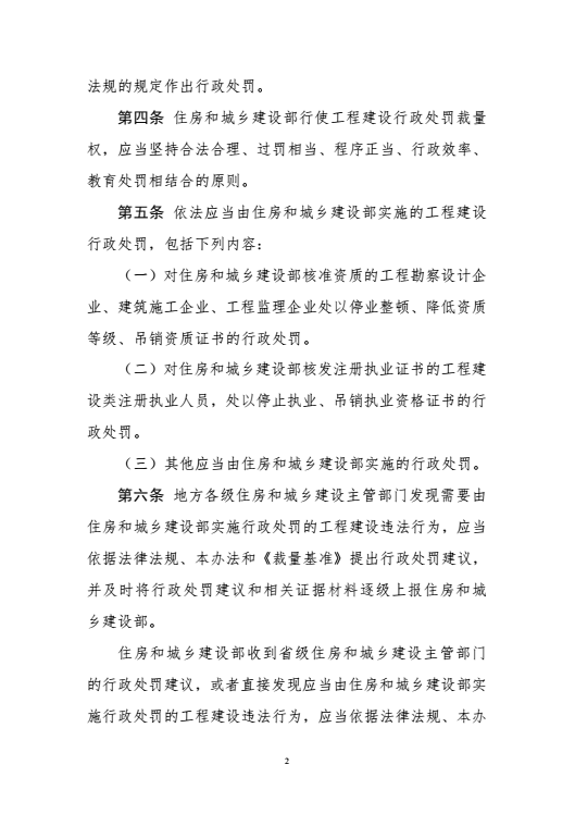 近日,住房和城乡建设部正式印发《规范住房和城乡建设部工程建设行政处罚裁量权实施办法》和《住房和城乡建设部工程建设行政处罚裁量基准》,进一步规范了对工程建设违法行为的行政处罚工作。