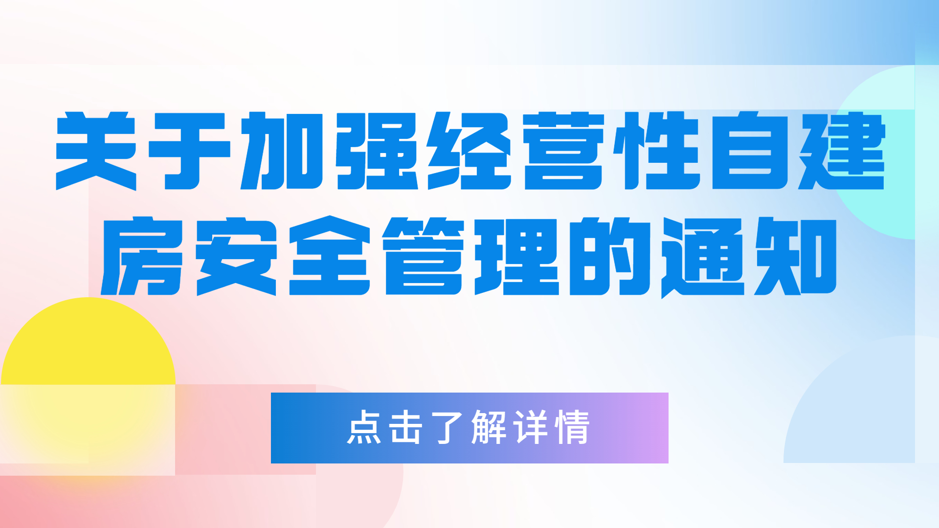 各省、自治区、直辖市人民政府,新疆生产建设兵团: 全国自建房安全专项整治工作开展以来,各地认真贯彻落实习近平总书记重要指示精神和党中央、国务院决策部署,组织开展“百日行动”,对危及公共安全的经营性自建房快查快改、立查立改,及时消除安全风险,取得积极成效。但经营性自建房量大面广、情况复杂,安全管理基础薄弱,仍存在规划建设管控不到位、审批与监管脱节、经营准入监管缺失、管理机制不健全、监管力量不足等问