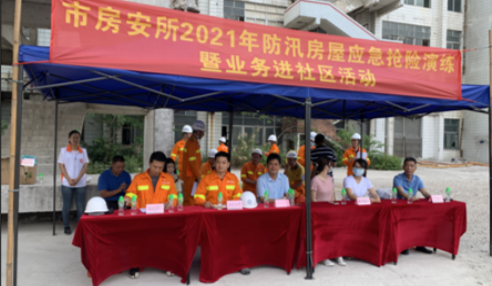 为深入学习贯彻习近平总书记在党史学习教育动员大会上的重要讲话精神,围绕“我为群众办实事”实践活动主题,市房安所扎实推进党史学习教育,将党史学习教育与业务工作同开展、共促进,积极开展党建引领业务进社区活动,进一步提升为群众办实事能力。 (活动现场) 4月14日上午,市房安所2021年防汛房屋应急抢险演练暨业务进社区活动在白云区石潭西路118号举行,市房屋应急抢险救援队、白云区房安
