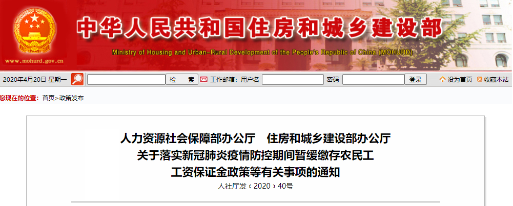 为深入贯彻习近平总书记关于统筹推进新冠肺炎疫情防控和经济社会发展工作的重要指示精神,更好实施就业优先政策,加快落实阶段性、有针对性的减负措施,推动建筑企业复产复工,现就房屋和市政基础设施工程建设项目暂缓缴存农民工工资保证金等有关事项通知如下: 二、严格落实农民工工资保证金差异化存储办法,对一定时期内未发生拖欠工资的施工企业,依法依规实行减免措施,切实减轻工资支付记录良好企业的资金压力。