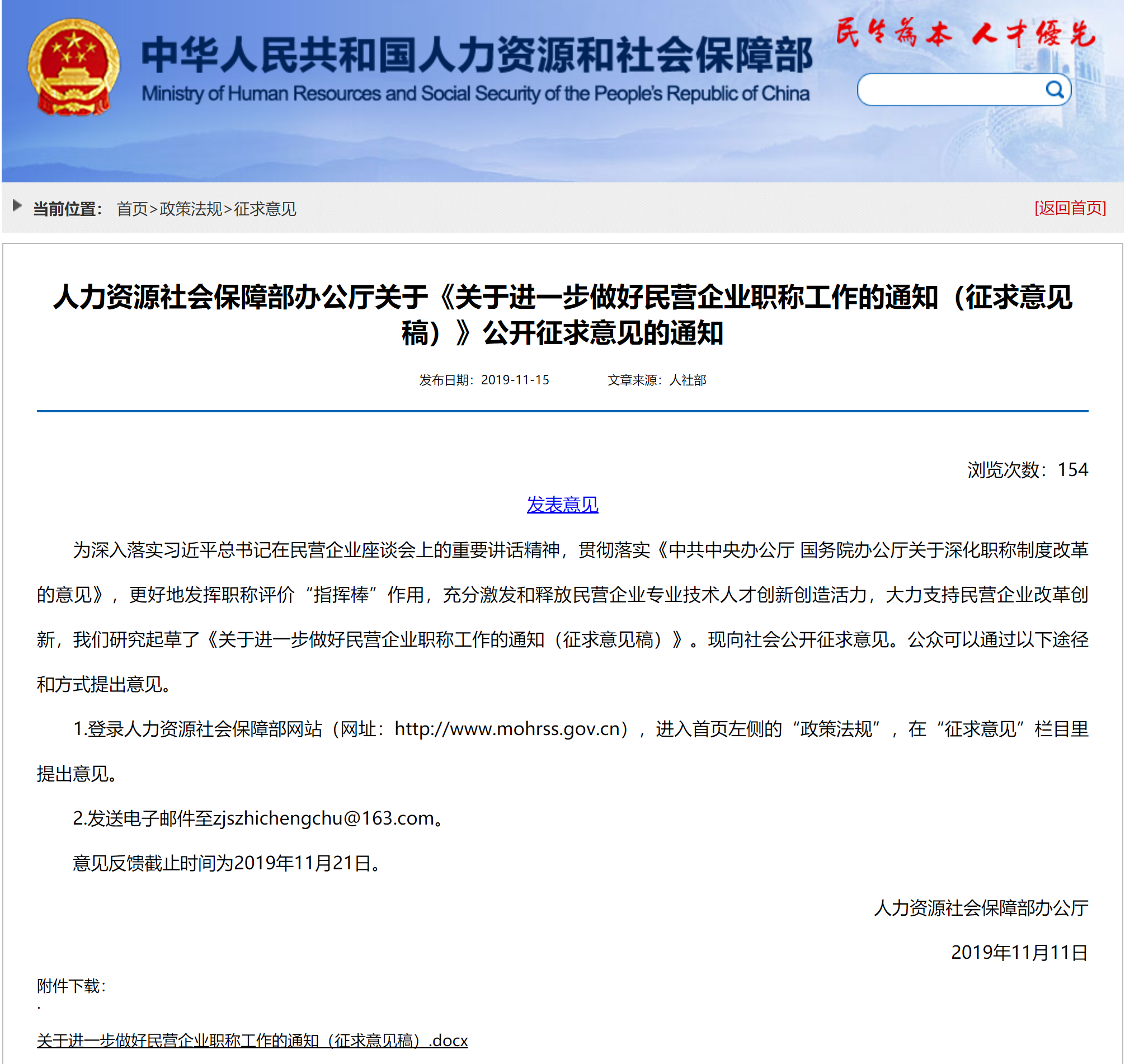 日前,人力资源社会保障部办公厅近日就《关于进一步做好民营企业职称工作的通知(征求意见稿)》(下文简称“《征求意见稿》”)公开征求意见。 《征求意见稿》提出,进一步破除“唯学历、唯资历、唯论文、唯奖项”倾向,突出工作能力和业绩考核,注重市场认可和对企业的实际贡献。对论文、职称外语等不做限制性要求。引导民营企业将职称评审结果作为确定岗位、绩效、薪酬等的依据。 一、拓宽民营企业职称申报渠道 民营