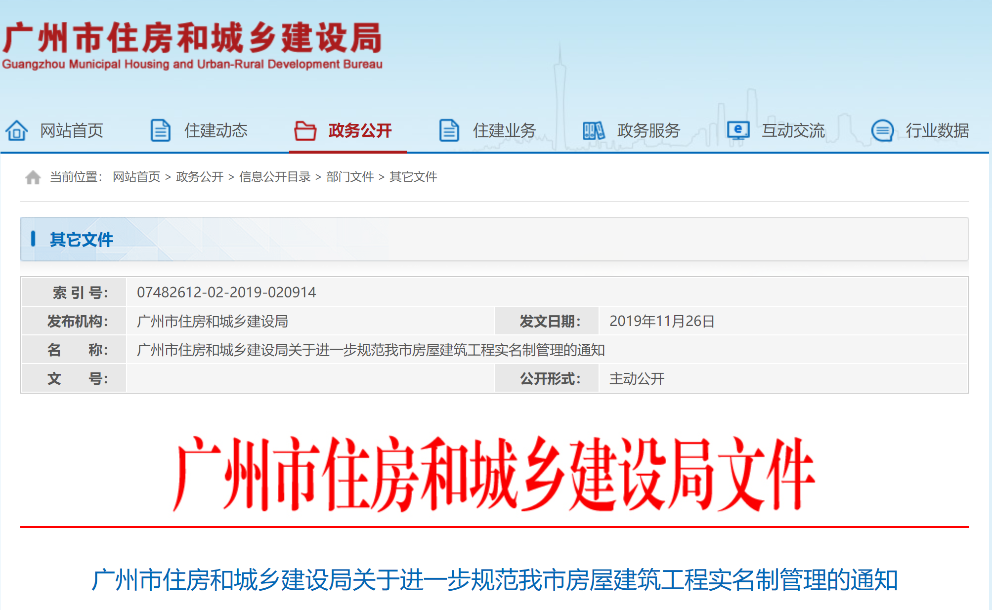 各区住房城乡建设主管部门,空港委规划建设局,市安监站,各有关建设、施工、监理单位: 近期,市住房城乡建设局组织全市在建房建工程实名制管理工作专项检查发现,部分项目实名制考勤管理存在“手工考勤,工人采用生物识别考勤比例偏低”等突出问题。为认真落实《住房和城乡建设部人力资源社会保障部关于印发建筑工人实名制管理办法(试行)的通知》(建市〔2019〕18号,下称部实名办法),同时根据《广东省建设工程领