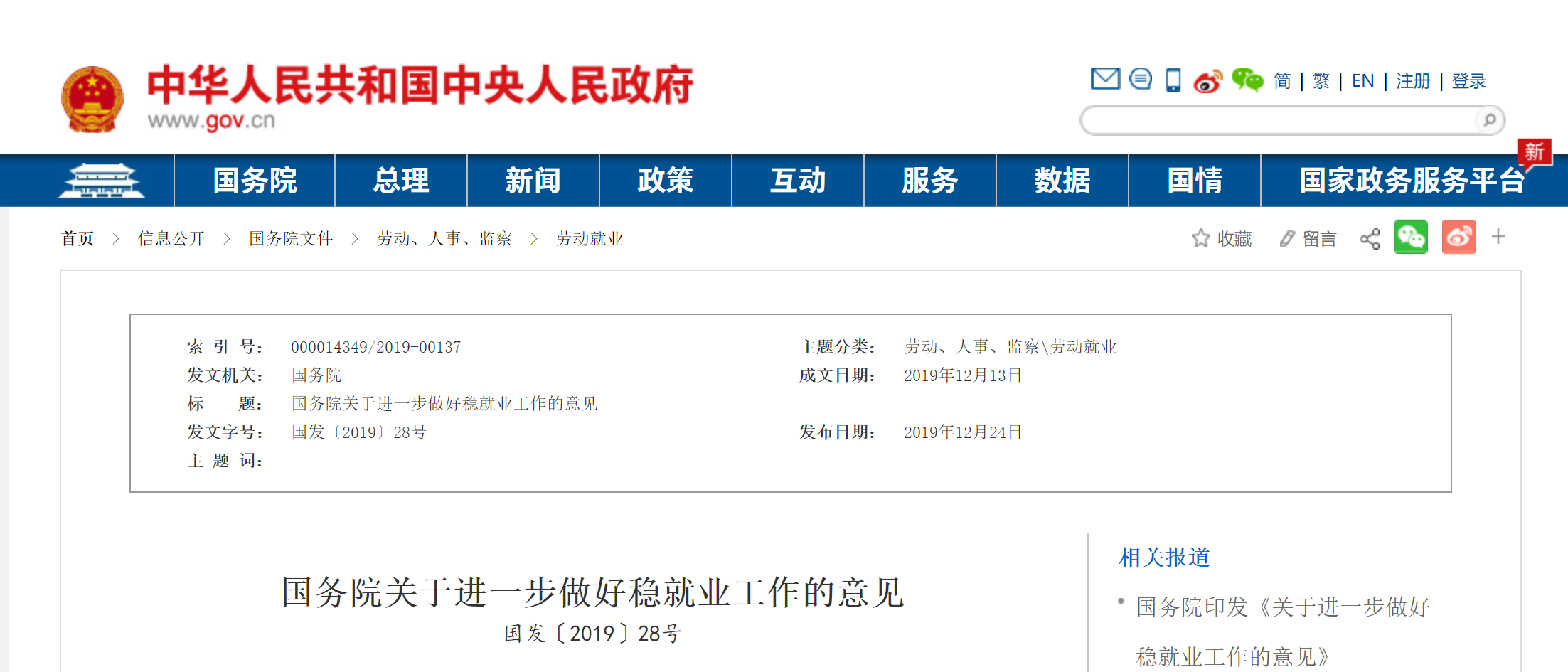 新华社北京12月24日电经李克强总理签批,国务院近日印发《关于进一步做好稳就业工作的意见》(以下简称《意见》)。 《意见》指出,要以习近平新时代中国特色社会主义思想为指导,全面贯彻党的十九大和十九届二中、三中、四中全会精神,坚持把稳就业摆在更加突出位置,强化底线思维,做实就业优先政策,健全有利于更充分更高质量就业的促进机制,坚持创造更多就业岗