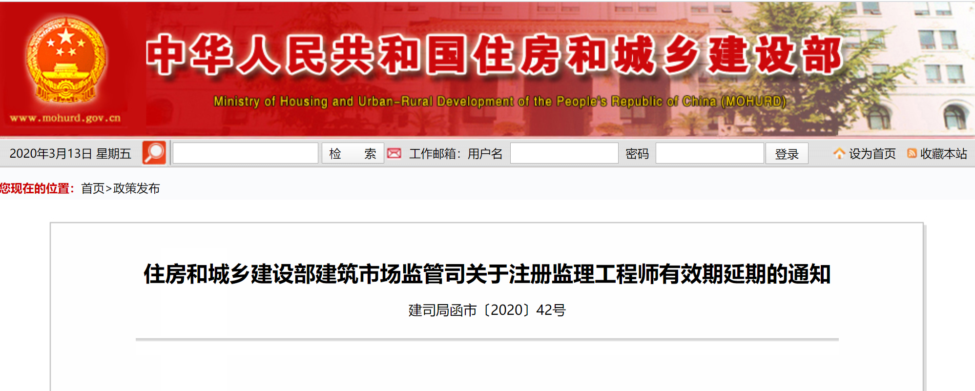 为贯彻落实党中央国务院关于统筹推进新冠肺炎疫情防控和经济社会发展工作的决策部署,精准稳妥推进企业复工复产,现决定,我部核发的注册监理工程师注册执业证书,有效期于2020年6月30日前期满的,统一延期至2020年7月31日,并在全国建筑市场监管公共服务平台自动延期。在此期间,注册监理工程师可根据全国建筑市场监管公共服务平台显示的有效期正常开展执业活动。