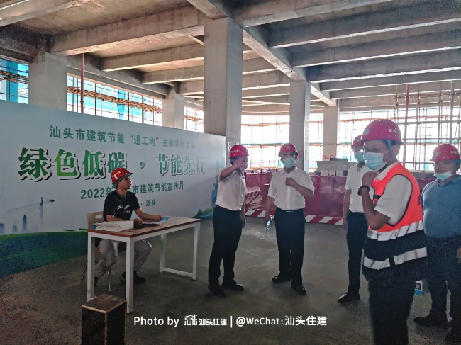 为贯彻落实《2022年汕头市建筑领域节能宣传月工作方案》相关要求,广泛宣传建筑节能与绿色建筑,推动形成绿色发展方式和生活方式,6月24日上午,汕头市在汕头市中心医院异地重建项目(重大疫情救治基地)举办2022年建筑节能“进工地”主题宣传观摩活动。各区县(含功能区)住建部门,市、区两级质量监督机构,部分建设、施工、监理单位参加本次宣传活动。 本次观摩活动由汕头市住建局主办,市建设工程质量与安全中心