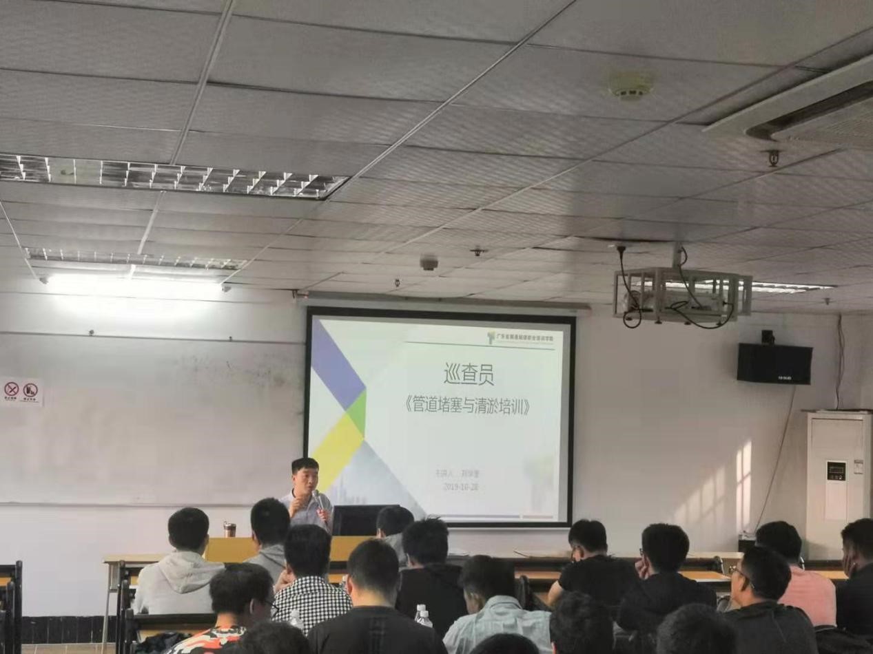 本次培训班为配合排水公司工作安排,共分五天进行授课,培训总人数将近五百人。本次培训课题分别为管道堵塞与清淤处理、城市排水系统与污水处理培训。管道堵塞与清淤处理课程主要介绍管道堵塞的原因、管道清淤的流程、管道清淤的主要方法、管道清淤施工安全问题、管道疏通日常养护。城市排水系统与污水处理培训课程主要介绍城市排水系统讲解、城市排水水质相关指标讲解、排水污水处理工艺、城市管道常见问题及处理方法、排水管道材料应用现状。课堂上,学员积极提问,学习氛围浓烈。