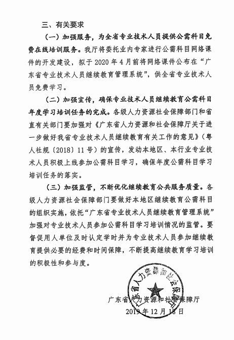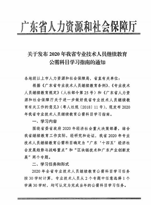 广东省人力资源和社会保障厅关于发布2020年我省专业技术人员继续教育公需科目学习指南的通知