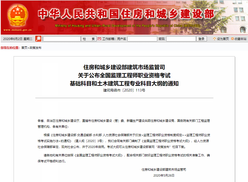 住房和城乡建设部建筑市场监管司 关于公布全国监理工程师职业资格考试 基础科目和土木建筑工程专业科目大纲的通知