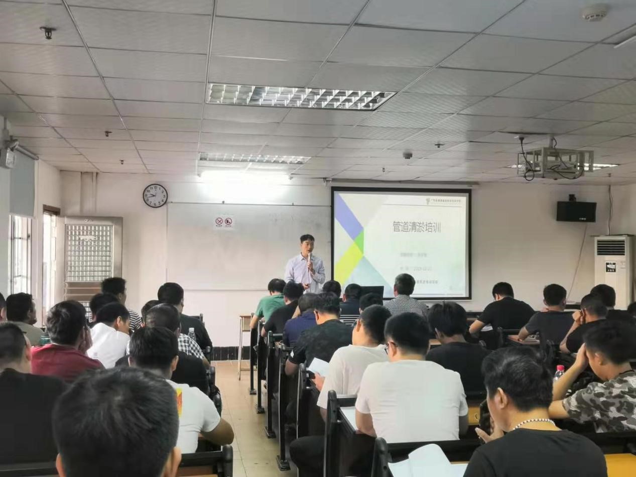 受广州市城市排水有限公司东区运营分公司、南区运营分公司、西区运营分公司、北区运营分公司委托,2019年一线员工(管道清淤岗位、排水管理巡查岗位)培训由广东省精通城建职业培训学院承办,在广州市越秀区开办,班务工作由广东省瀚建小云通教育科技有限公司提供支持。 本次培训班为配合排水公司工作安排,共分五天进行授课,培训总人数将近五百人。本次培训课题分别为管道堵塞与清淤处理、城市排水系统与污水处理培训。